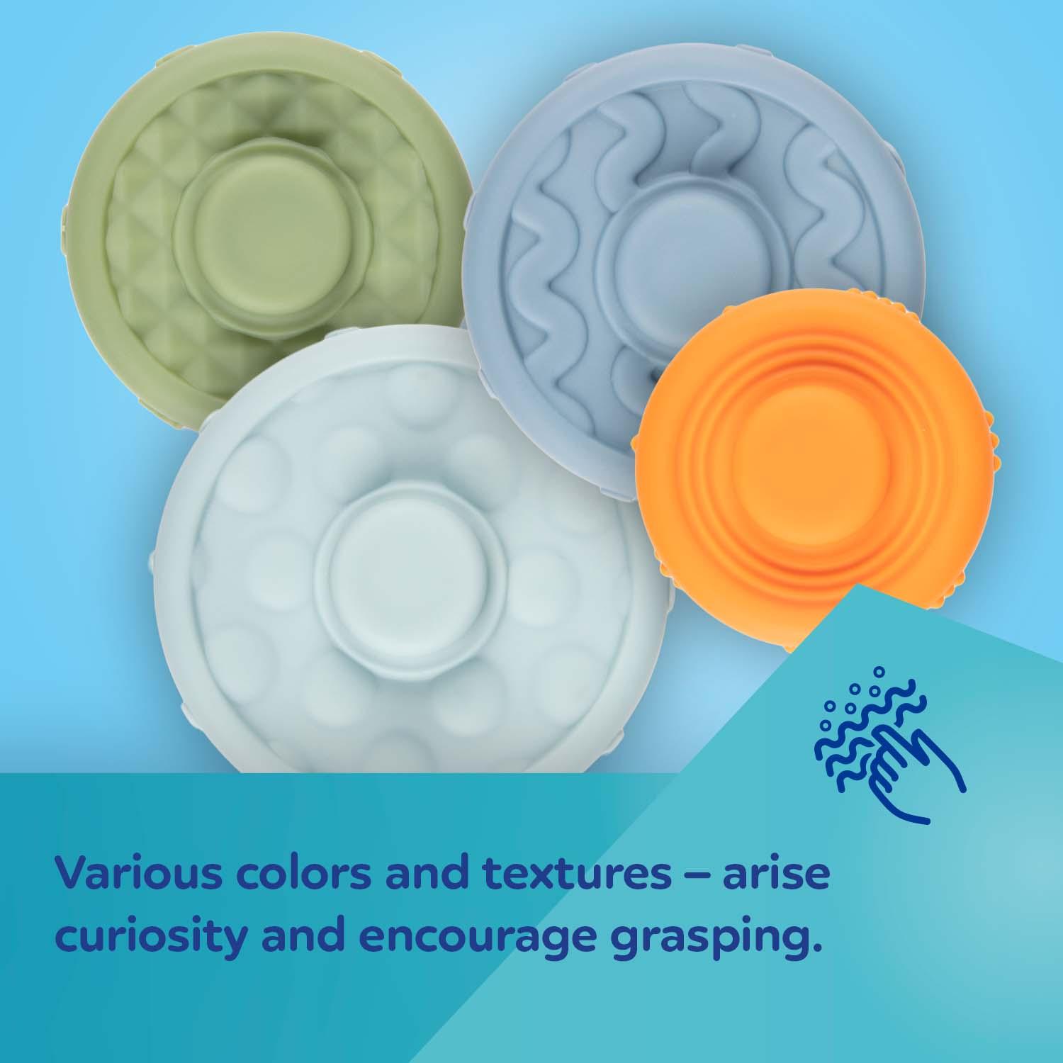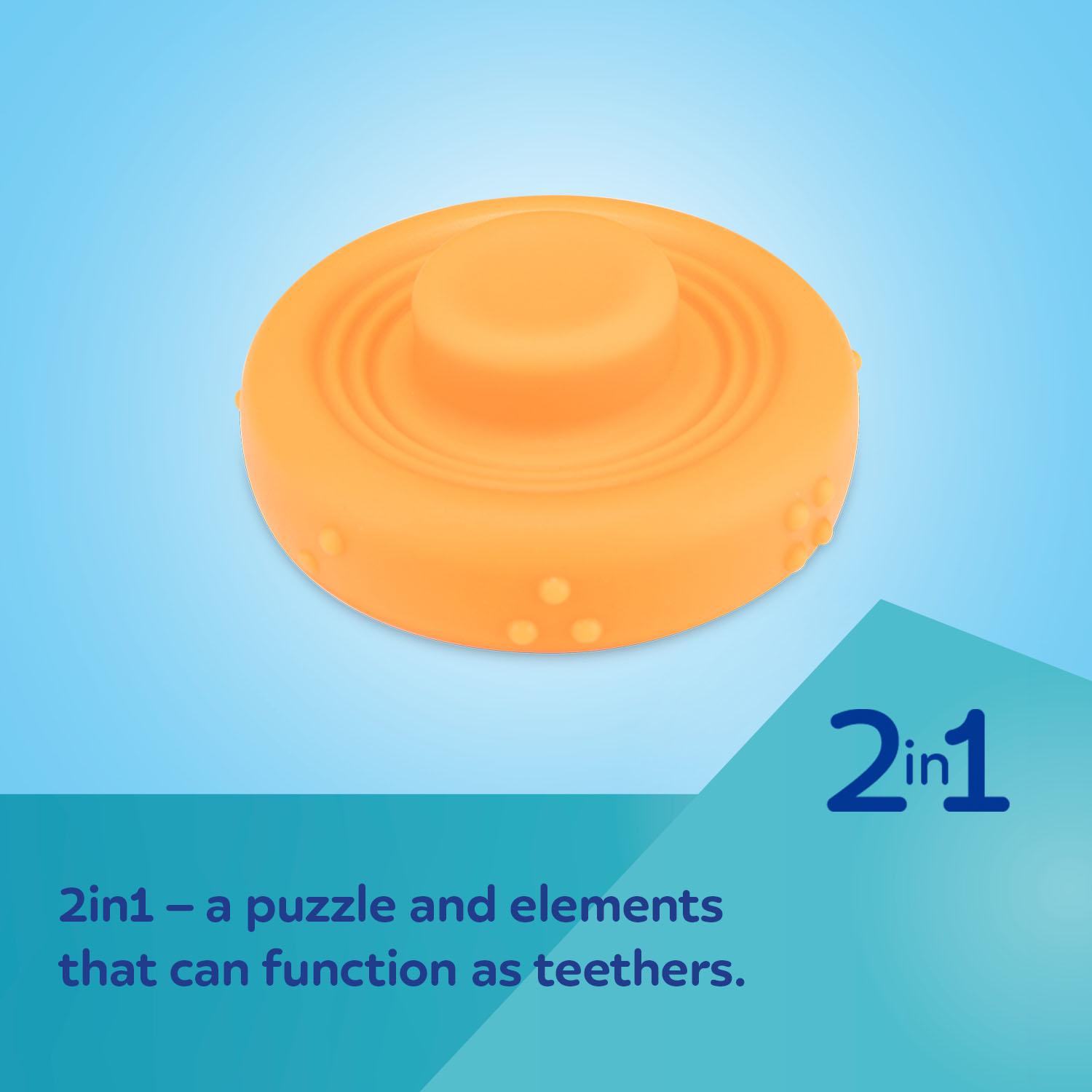 Joustavasta silikonista valmistettu aistipurulelu ovat täydellinen ensilelu vauvalle, mutta myös suuri apu hampaiden puhkeamisen aikaan. Se on helpotus, kun ikenet kutisevat ja lapsella on voimakas puremisen tarve. Lelu tukee hienomotoristen taitojen kehittymistä. Se auttaa myös oppimaan sellaisia taitoja kuten tarttuminen ja silmän-käden-koordinaatio. Mielenkiintoiset värit ja muotoilu herättää vauvan kiinnostuksen ja kannustavaa häntä leikkimään. Purulelu on joustava, sitä voidaan puristaa ja venyttää turvallisesti, se palaa aina alkuperäiseen muotoonsa leikin jälkeen.