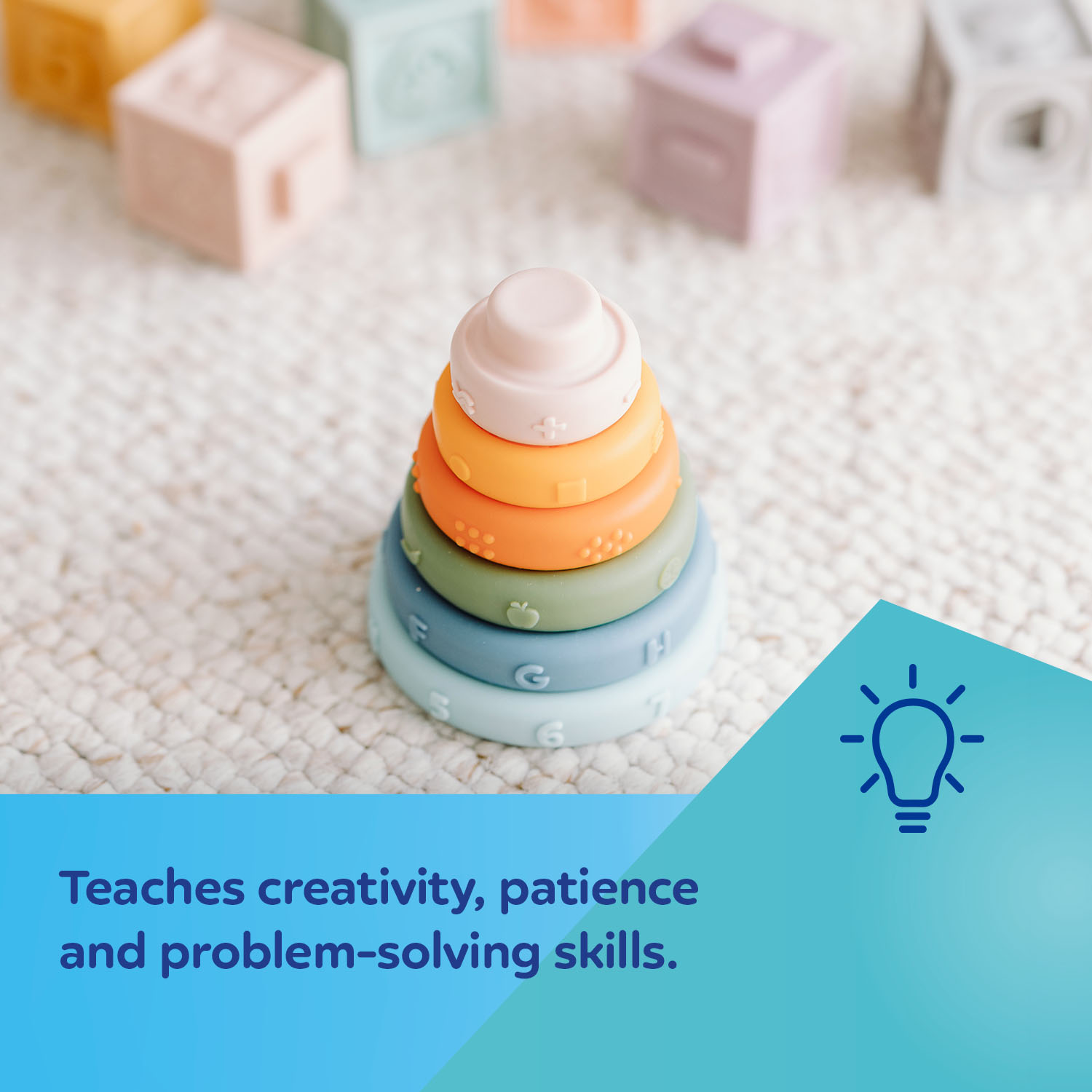 Sensorinen aistilelu koottava pyramidi koostuu 6 elementistä erikokoisina ja -värisinä. Värikkäiden elementtien pinoaminen suurista pienimpiin pyramidin muotoon harjoittaa lapsen motoriikkaa ja kärsivällisyyttä. Canpol Babies sensorinen rengaspulmapyramidi auttaa oppimaan ja erottamaan värejä ja kokoja, tukee lapsen silmän ja käden koordinaatiota. Pyramidin jokaisessa kerroksessa on erimuotoisia upotettuja tai kohokuvioisia muotoja: numeroita ja kirjaimia, pisteitä jne. Vauva voi koskettaa niitä sormillaan, oppia uusia tekstuureja, aktivoimaan tuntoaistia tai "maistamaan" - jotkut elementit ovat hyviä myös puruleluina.Aistilelu koottava pyramidii on klassinen opetuslelu, jonka ansiosta lapsi harjoittelee leikin kautta kädentaitoja, muistia ja mielikuvitusta sekä loogista ja strategista ajattelua – miten hajallaan olevista elementeistä tehdään torni. Pyramidin järjestäminen on mahtavaa koukuttavaa tekemistä pienille. Lelua suositellaan lapsille 8 kuukauden iästä alkaen.