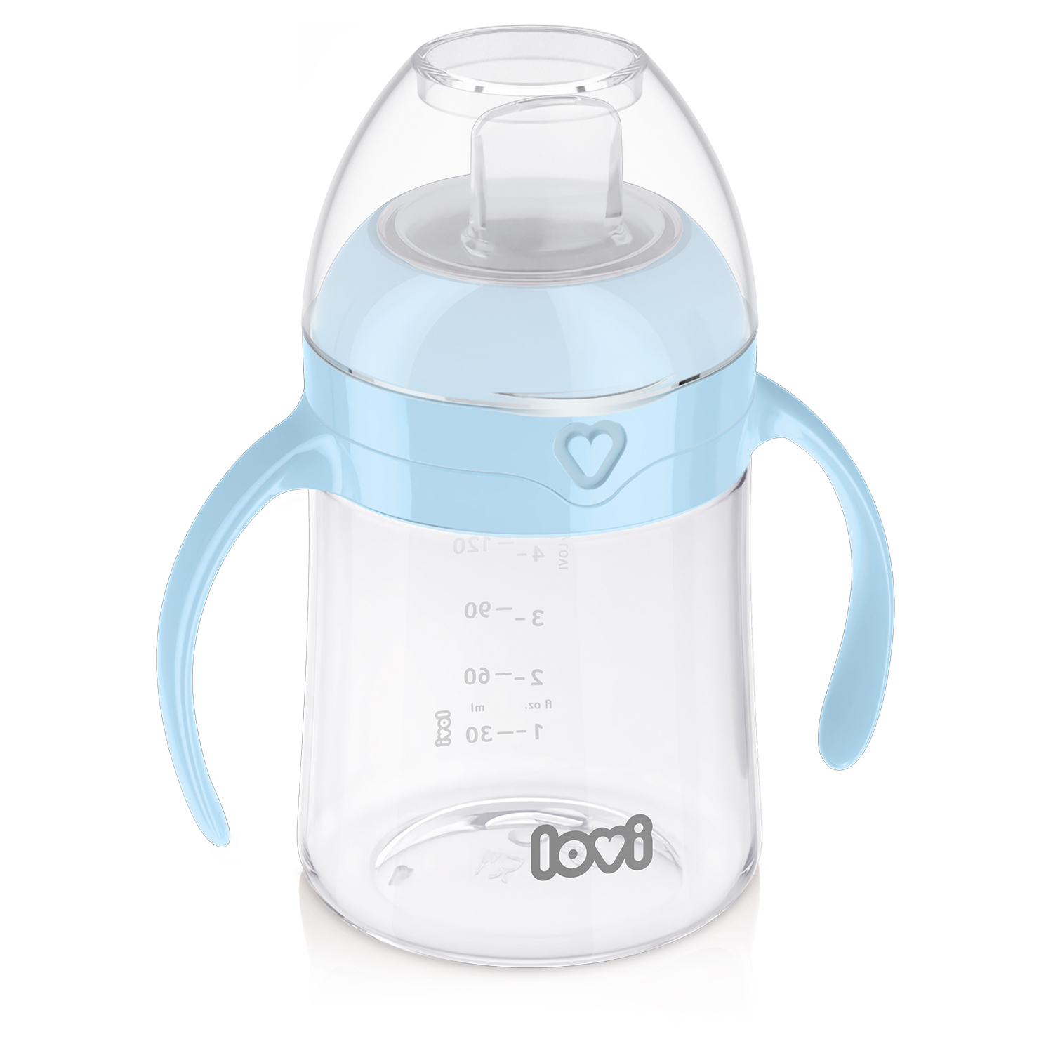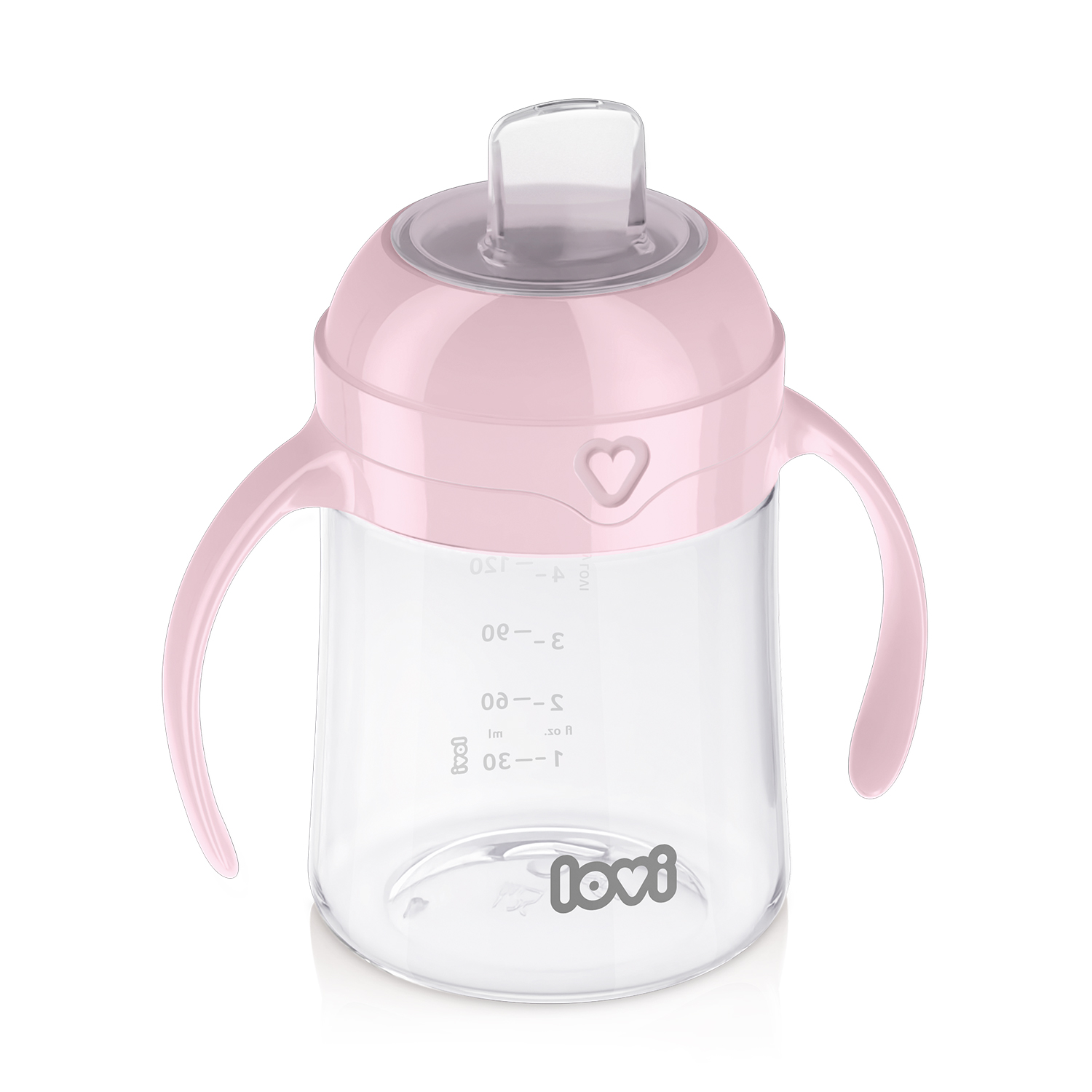 LOVI First Cup Easy Switch -muki sopii täydellisesti itsenäisen juomisen oppimisen alkuvaiheisiin. Muki on suunniteltu yli puolen vuoden ikäisille lapsille helpottamaan sujuvaa siirtymistä tuttipullosta mukiin.