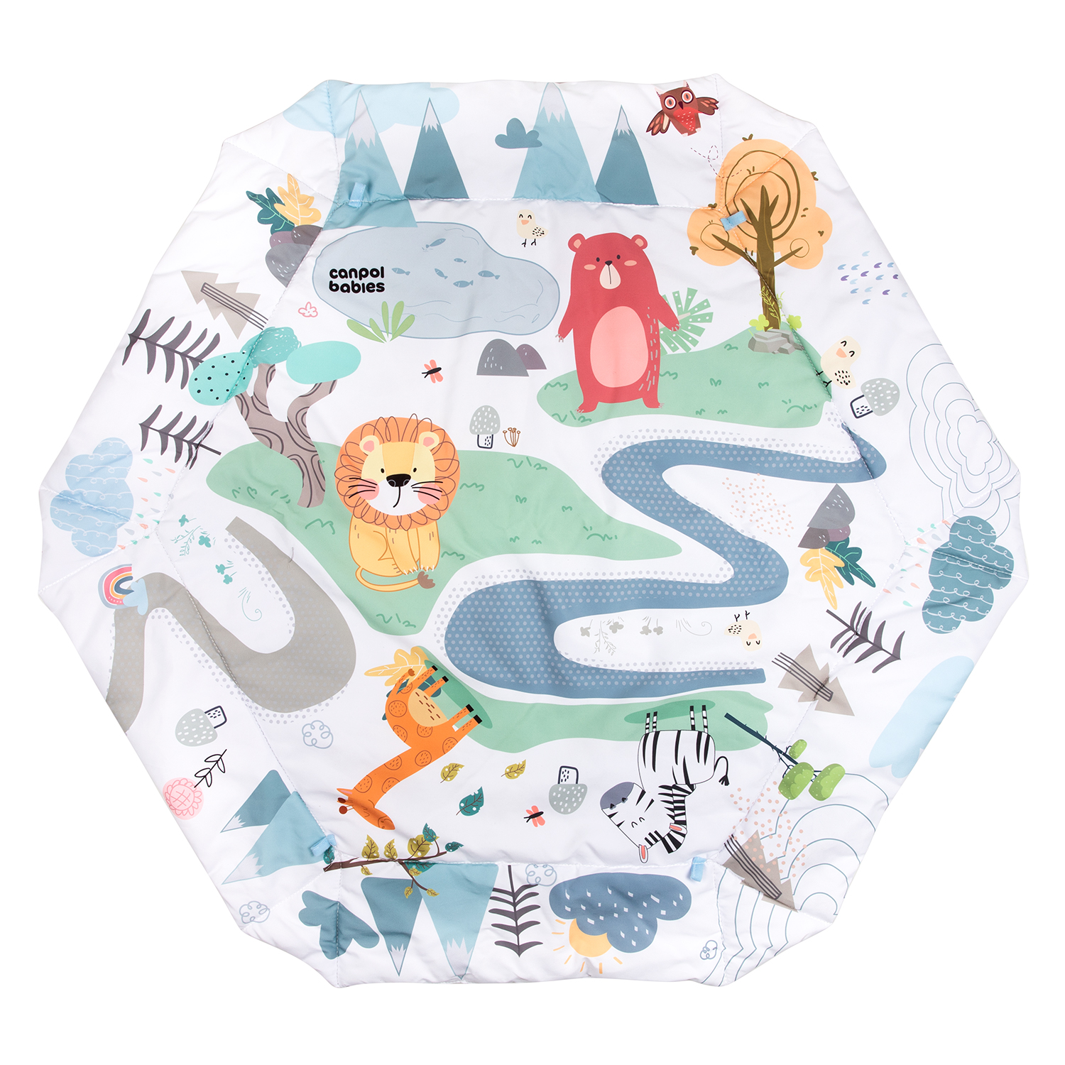 Ylös nostettavien reunojen ansiosta leikkimatto luo lapselle turvallisen tilan leikkiä ja antaa vanhemmille mahdollisuuden saada hetken aikaa itselleen tai kotitöihin. Maton voi pestä pyykinpesukoneessa.