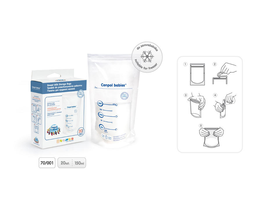Pussit (20 pussia/pkt) rintamaidon säilytykseen jääkaapissa tai pakastimessa. Nämä mahdollistavat rintamaidon korkean laadun pitkäaikaisen ylläpidon. Pussit on valmistettu materiaalista, joka on tarkoitettu elintarvikekontaktiin. Pussin erityinen rakenne tekee pussin asettamisen pystyasentoon helpoksi ilman läikyttämisen vaaraa. Lisäksi itsekiinnittyvät etiketit varmistavat selkeät merkinnät.
