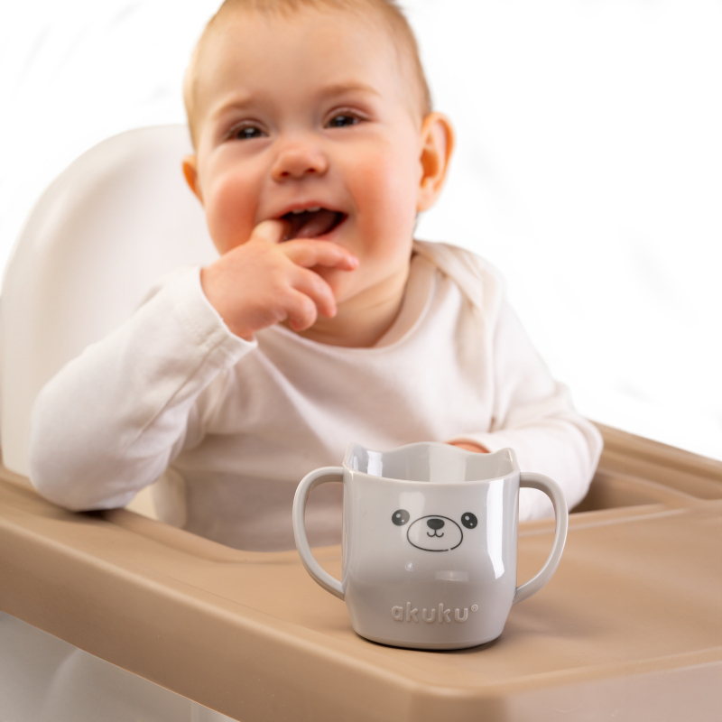 Avoin muki kahvoilla on tarkoitettu lapsille, jotka ovat oppimassa juomaan itsenäisesti. Se on kevyt ja kätevä, ja sopii hyvin pieniin käsiin. Lapset haluavat käyttää samanlaisia mukeja kuin aikuiset, avoin muki kahvoilla on turvallisempi ratkaisu. Muki on leikattu reunasta, mikä helpottaa juomista, eikä lapsen tarvitse kallistaa päätään taaksepäin. Tämä vähentää tukehtumisriskiä. Muki on valmistettu särkymättömästä ja turvallisesta muovista (PP), joka ei sisällä BPA:ta tai muita haitallisia aineita. Se on kevyt ja iskunkestävä. Mukavat kahvat helpottavat tarttumaan mukiin. Muki voidaan pestä astianpesukoneessa. Se on tarkoitettu kylmille tai huoneenlämpöisille juomille. Tämä käytännöllinen muki kannustaa juomaan vettä ja omaksumaan terveellisiä tapoja. Kahvallinen muki sopii erinomaisesti päivittäiseen käyttöön ja on suositeltava yli 6 kuukauden ikäisille lapsille.