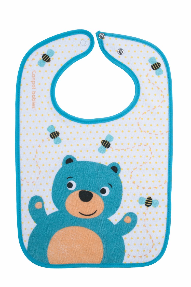 Käytännöllinen ruokalappu on suositeltu käytettäväksi varhaisesta vauvaiästä alkaen. Etana/perhonen -kuviointi. Lapun kaksikerroksinen kangas on valmistettu puuvillasta (100%). Kaula-aukko nepparikiinnityksellä (kaksi eri kiinnityskohtaa).