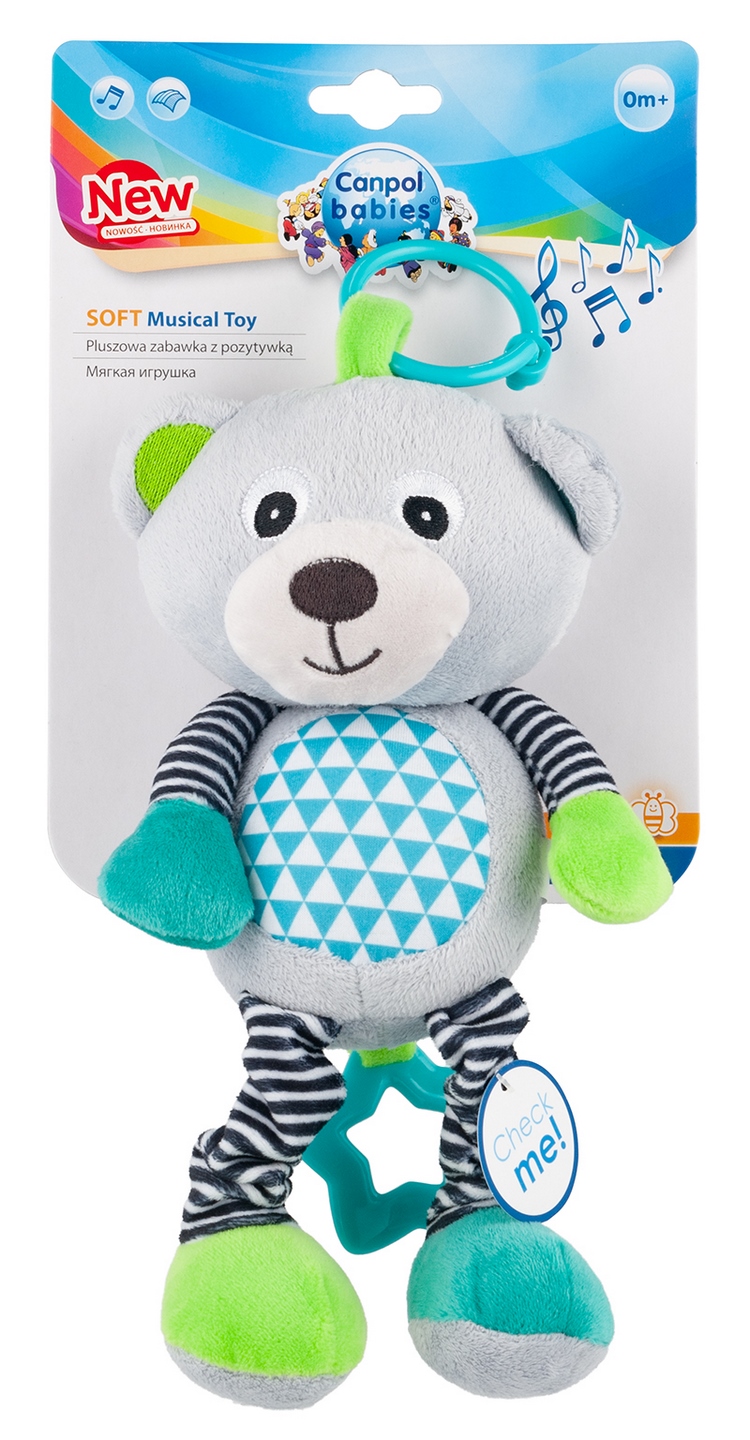 Pehmeä soiva lelu, joka auttaa kehittämään lapsen silmän ja käden koordinaatiota. Nallen pinta koostuu monia erilaisista tekstuureista, joita lapsi voi kokeilla
