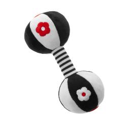 Käsipainon muotoinen pehmeä lelu on valmistettu miellyttävästä kankaasta, joka ei ärsytä lapsen herkkää ihoa. Se tukee lapsen kehitystä ensimmäisistä päivistä lähtien. Lelussa on käytetty värejä, jotka vauva näkee jo syntymästä lähtien. Lelu stimuloi vauvan visuaalisen, auditiivisen ja motorisen koordinaation kehittymistä. Sisälle sijoitettujen helistimien avulla vauva voi oppia ensimmäiset äänet ja kehittää kuuloaistiaan. Lelu on suunniteltu 0kk+ ikäisille lapsille. Koko: 21 × 12 × 7 cm.