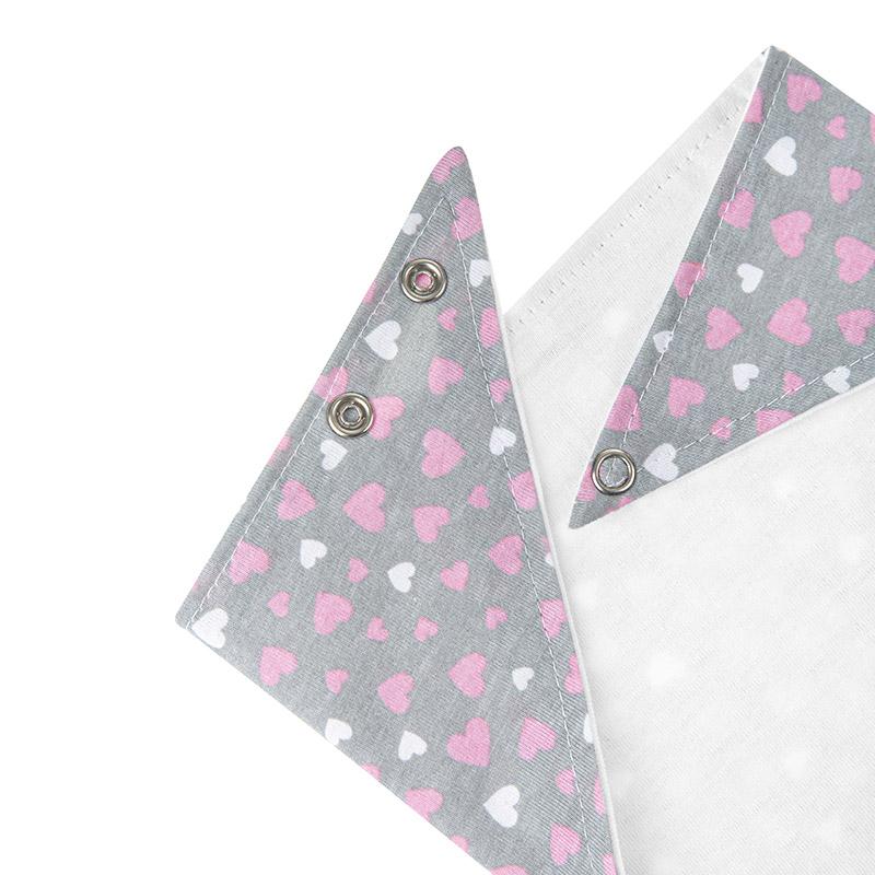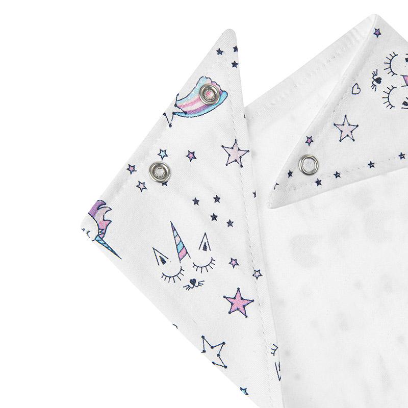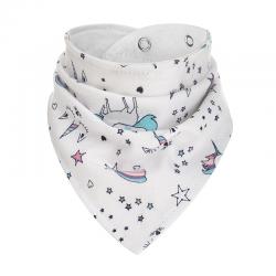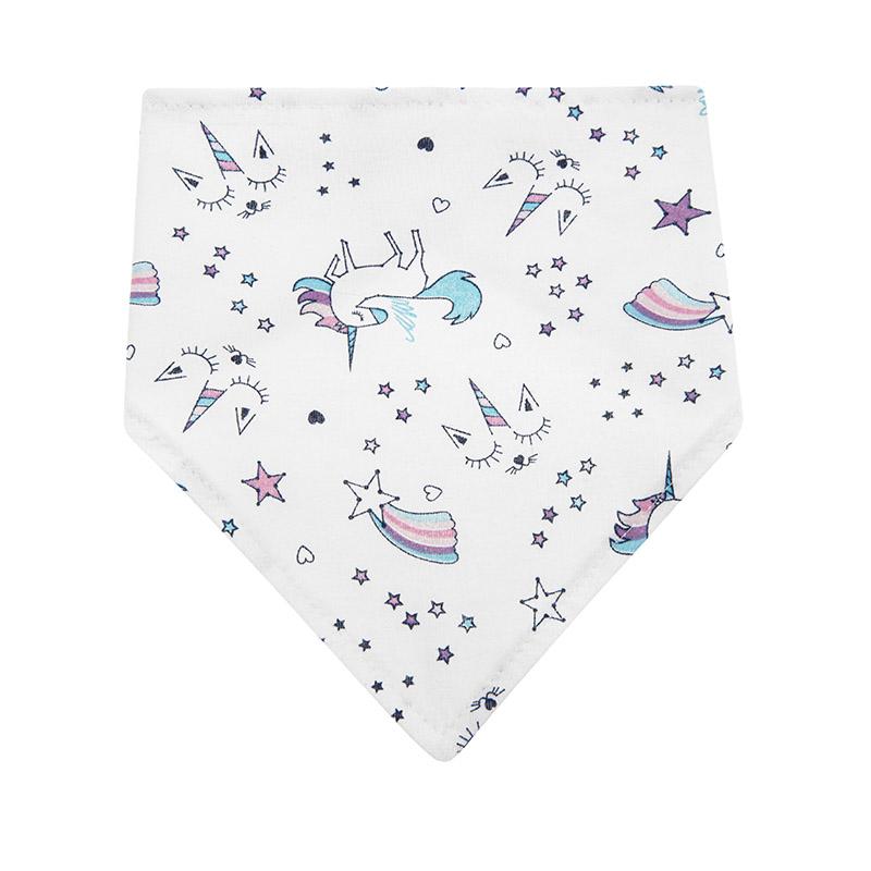 Kaksikerroksinen vauvan bandana, joka suojaa pienokaisen vaatteita syljen valumiselta ja ruokatahroilta. Sitä voidaan käyttää myös tyylikkäänä vaatekappaleena, joka suojaa lapsen kaulaa auringolta ja tuulelta. Varustettu nepparikiinnityksellä, jota voidaan säätää kahteen eri kaula-aukon mittaan. Tuote on valmistettu pehmeästä, 100%: n puuvillasta, joka on hellä lapsen herkälle iholle.