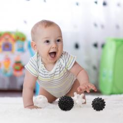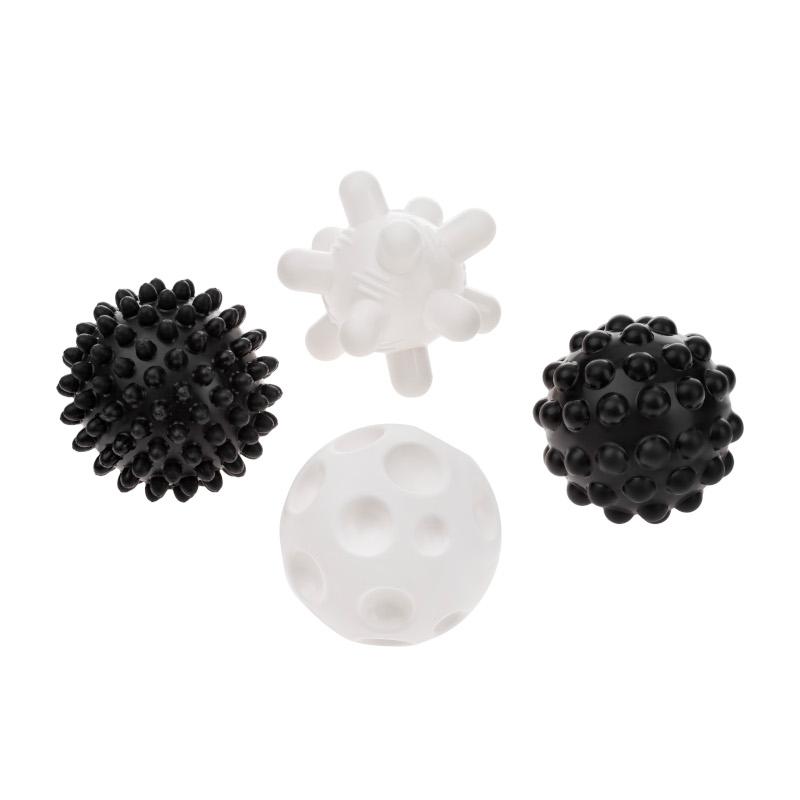 Mustavalkoiset kontrastivärit kehittävät lapsen aisteja ja vaihtelevat muodot kannustavat lasta leikkimään luovasti. Aistipallot tuovat lapselle uuden elämyksen kosketus-, väri- ja äänimaailmaan. Monipuolisten tekstuurien ansiosta jokainen pallo antaa lapselle erilaiset aistikokemukset. Elementtejä painettaessa syntyy ääni, joka tuo taaperon leikkiin uutta jännitystä. Aistipallot stimuloivat luovuutta, mielikuvitusta ja visuaalista havainnointia sekä kehittävät motorisia taitoja.