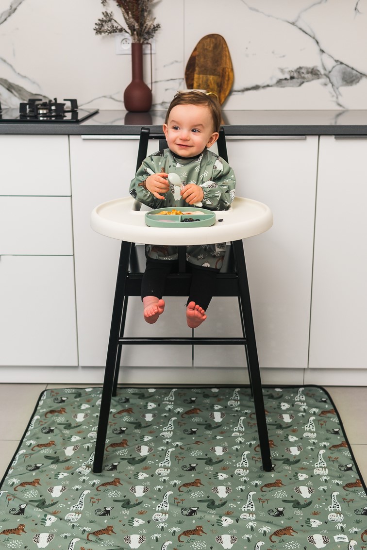 Monikäyttöinen suojamatto on tuote, joka helpottaa siivoamista lapsesi aterioiden ja taideleikkien jälkeen. Syöttötuolin alla oleva suojamatto vähentää ruokahävikin määrää, mikä on hyödyksi esimerkiksi sormiruokailun yhteydessä.Matto sopii esimerkiksi näihin käyttötarkoituksiin: