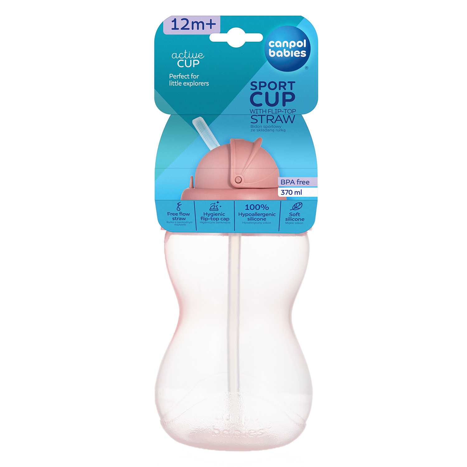 Sporttimuki taitettavalla pillinokalla on käytännöllinen tuote liikuttaessa taaperoikäisen kanssa. Muki on muotoiltu niin, että lapsen on helppo tarttua siihen pienillä käsillä. Suositeltu yli vuoden ikäiselle lapselle, jotka ovat oppineet juomaan itsenäisesti. Pilli taittuu nesteen pitävän suojan alle kun muki ei ole käytössä. Pehmeä silikonipilli, jossa on vapaa virtaus, on hellävarainen lapsen herkille ikenille. Turvallisesta muovista valmistettu muki on kevyt ja kestävä. Muki on varustettu pidikkeellä, jonka avulla voit kiinnittää sen rattaisiin tai vyöhön.