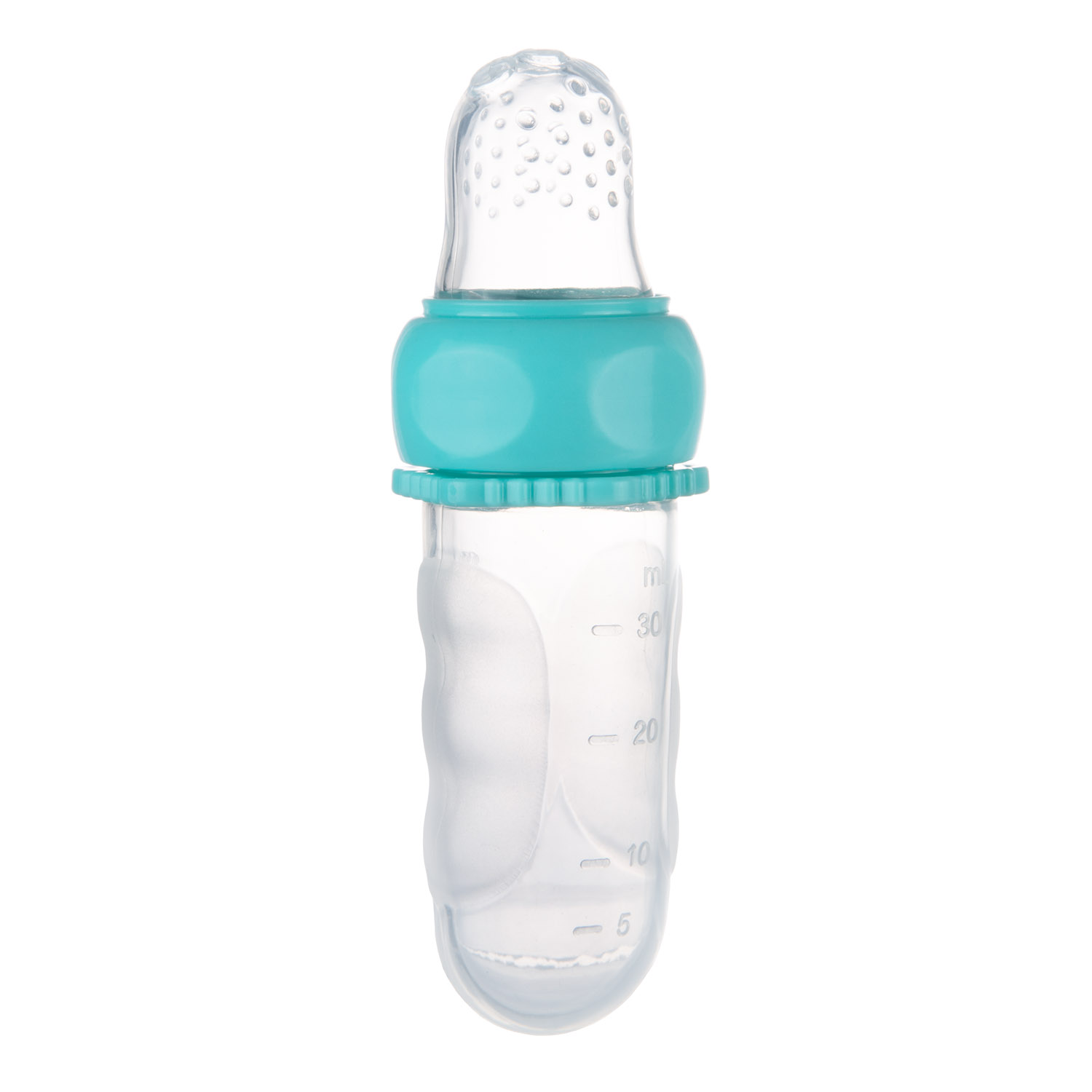 Silikoninen pehmeän ruoan suodin on suuri apu vauvan ruokavalion laajentamisessa. Voit käyttää sitä turvallisesti ensimmäisten hedelmien, vihannessoseiden, keittojen, aterioiden ja jälkiruokien tarjoiluun. Suotimella on putkimainen muoto ja se tarjoilee ruokaa kun lapsi puristaa sitä suussaan. Tämä edesauttaa lapsen itsenäisen ruokailun oppimista ja tukee tarttumisen kehitystä. Ruoka ei virtaa suotimesta ulos itsessään - tämä helpottaa ruuan sopivaa annostelua ja puhtauden ylläpitoa. Tuotetta voi käyttää myös puruleluna, mikä on hyödyllistä erityisesti hampaiden puhkeamisen aikana. Suodinta voidaan käyttää sekä kotona, että kävelyillä. Se on valmistettu turvallisesta, pehmeästä silikonista. Helppo pitää puhtaana. Ruokasäiliössä on mitta-asteikko, joka helpottaa annostelua. Suunniteltu 6kk+ ikäisille lapsille.