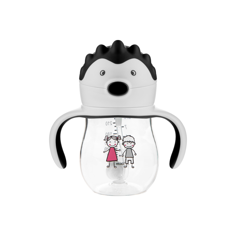 Painotettu pillimuki "akuku" sallii juoda nestettä mistä tahansa kulmasta.