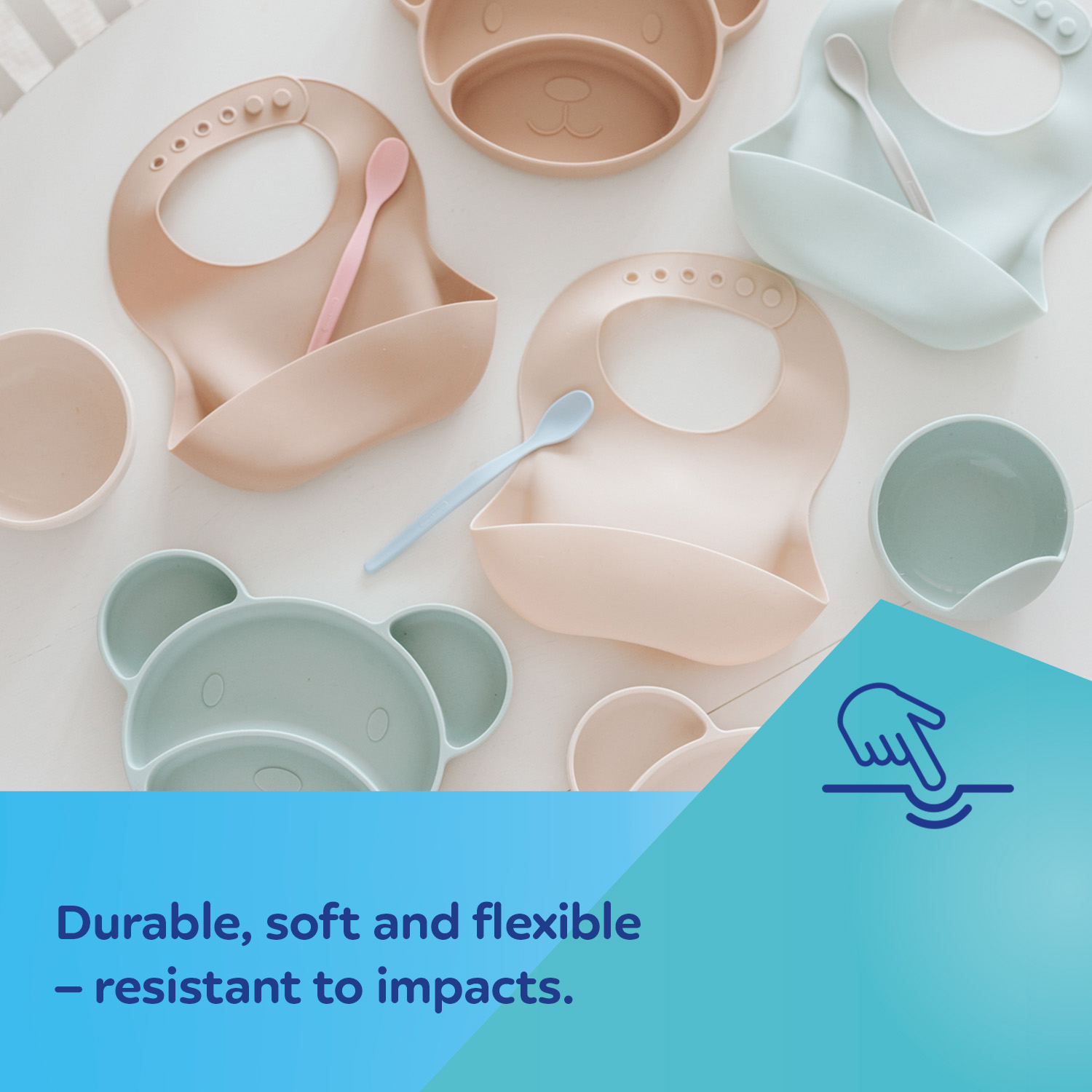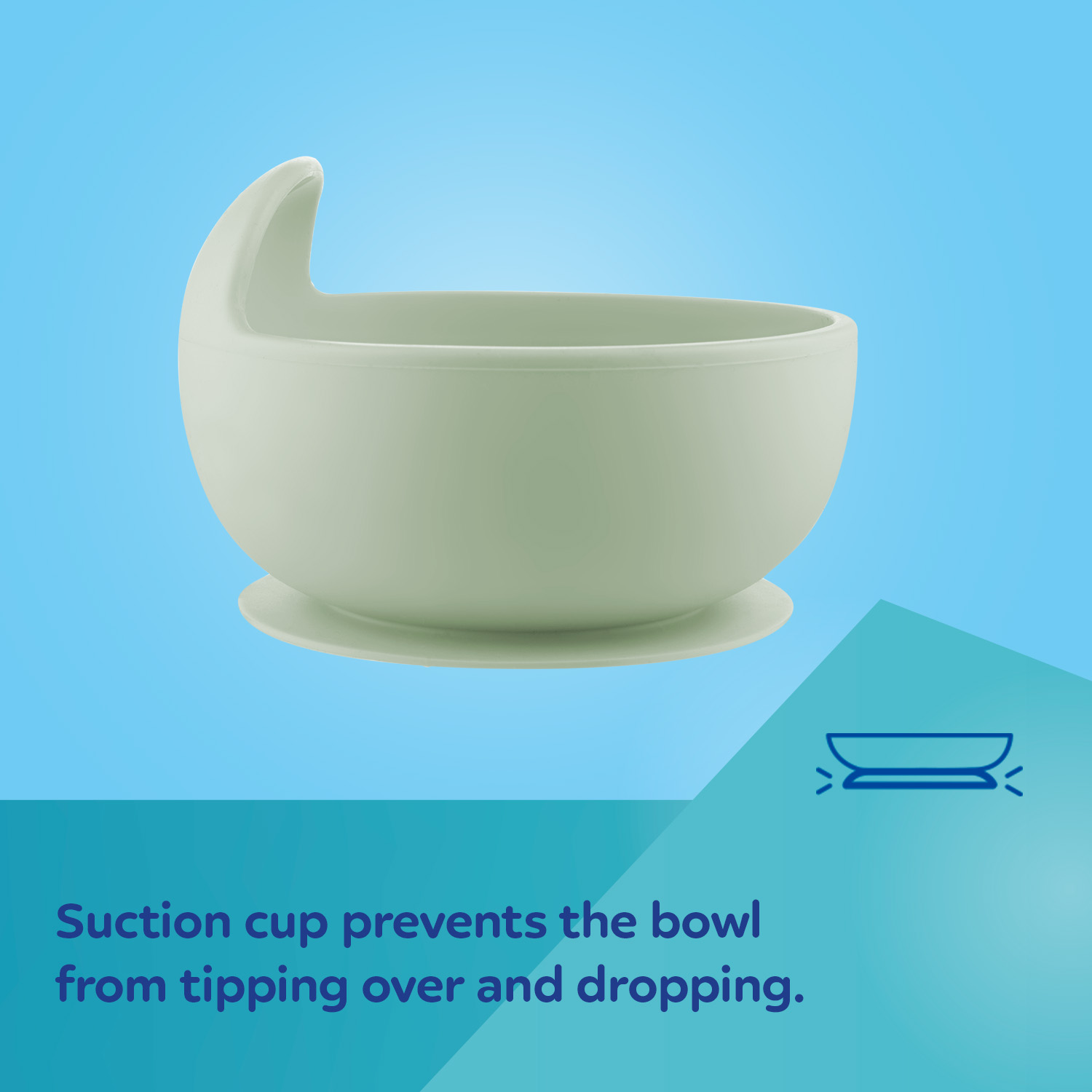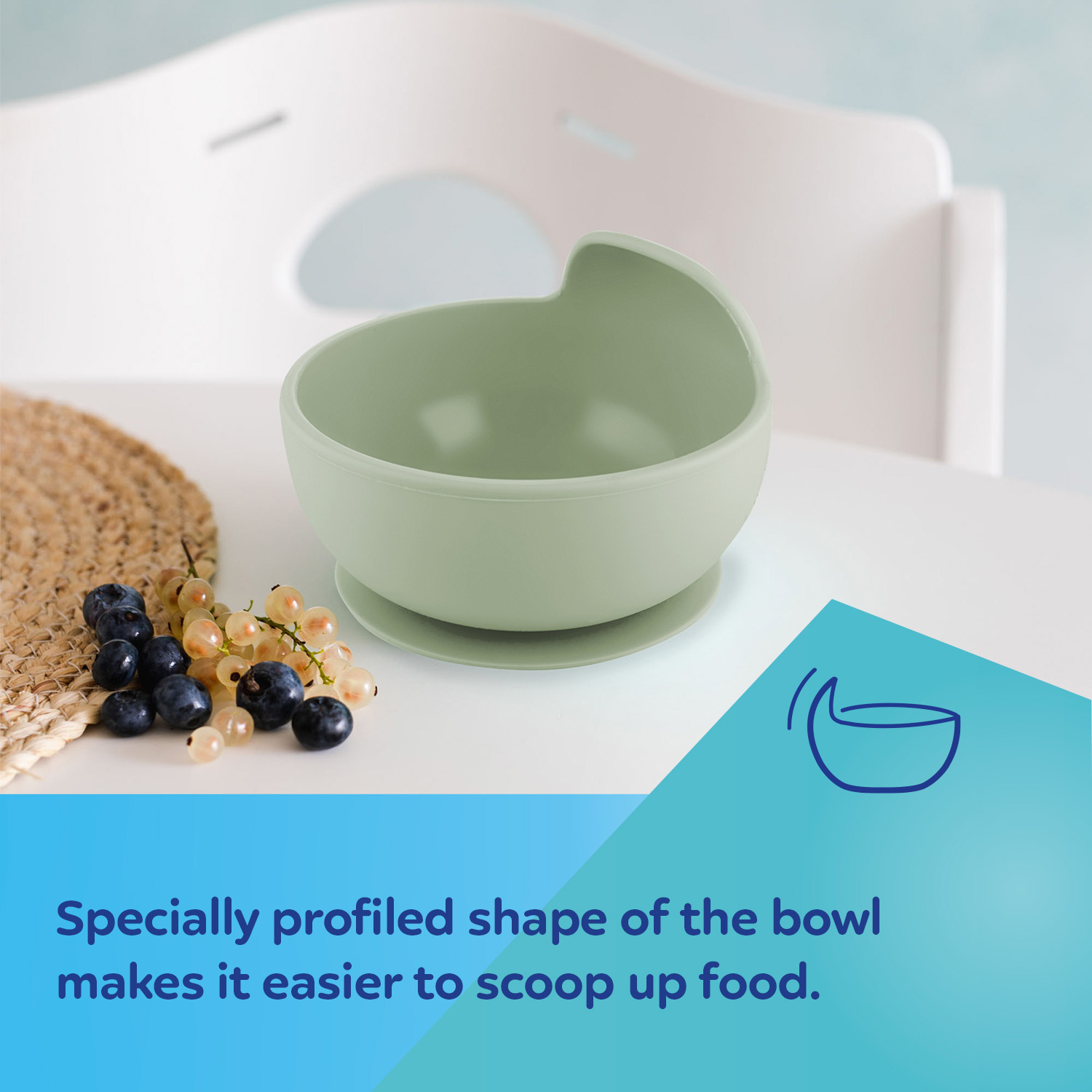 Imukupillinen silikonikulho on mainio ratkaisu vauvan ensiaterioille. Kulho toimii niin itsenäisen ruokailun harjoittelussa kuin vanhemman avustamana. Imukupin ansiosta kulho kiinnittyy turvallisesti pintaan ja ehkäisee sitä putoamasta pois pöydältä tai syöttötuolin tasolta. Käytännöllisen muotoinen kulho voidaan pestä turvallisesti astianpesukoneessa ja lämmittää mikroaaltouunissa. Kulho toimii hyvin myös sormiruokailun yhteydessä. Saatavana kahtena väriversiona. Tilavuus 330 ml.