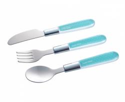 Aterinsetti ruostumatonta terästä (veitsi, haarukka ja lusikka), joka on suunniteltu lapsille omatoimisen ruokailun harjoitteluun. Sopii myös vanhemmille lapsille, jotka osaavat jo syödä itsenäisesti. Aterimien pyöristetty muotoilu ei ärsytä ikeniä ja on turvallinen. Aterimissa on värikkäät kuvitetut muovikahvat - muilta osin tuote on valmistettu korkealaatuisesta ruostumattomasta teräksestä. Suositellaan lapsille 18kk +