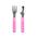 Profiloidut aterimet lapsille: haarukka ja lusikka. Mukana käytännöllinen säilytysrasia, joten aterimia on helppo käyttää myös kodin ulkopuolella, kävelyretkillä tai matkoilla. Valmistettu kokonaan turvallisista materiaaleista, jotka on tarkoitettu kosketukseen elintarvikkeiden kanssa. Ruokailuvälineiden pyöristetyt muodot sopivat hyvin pienten lasten herkille ikenille.