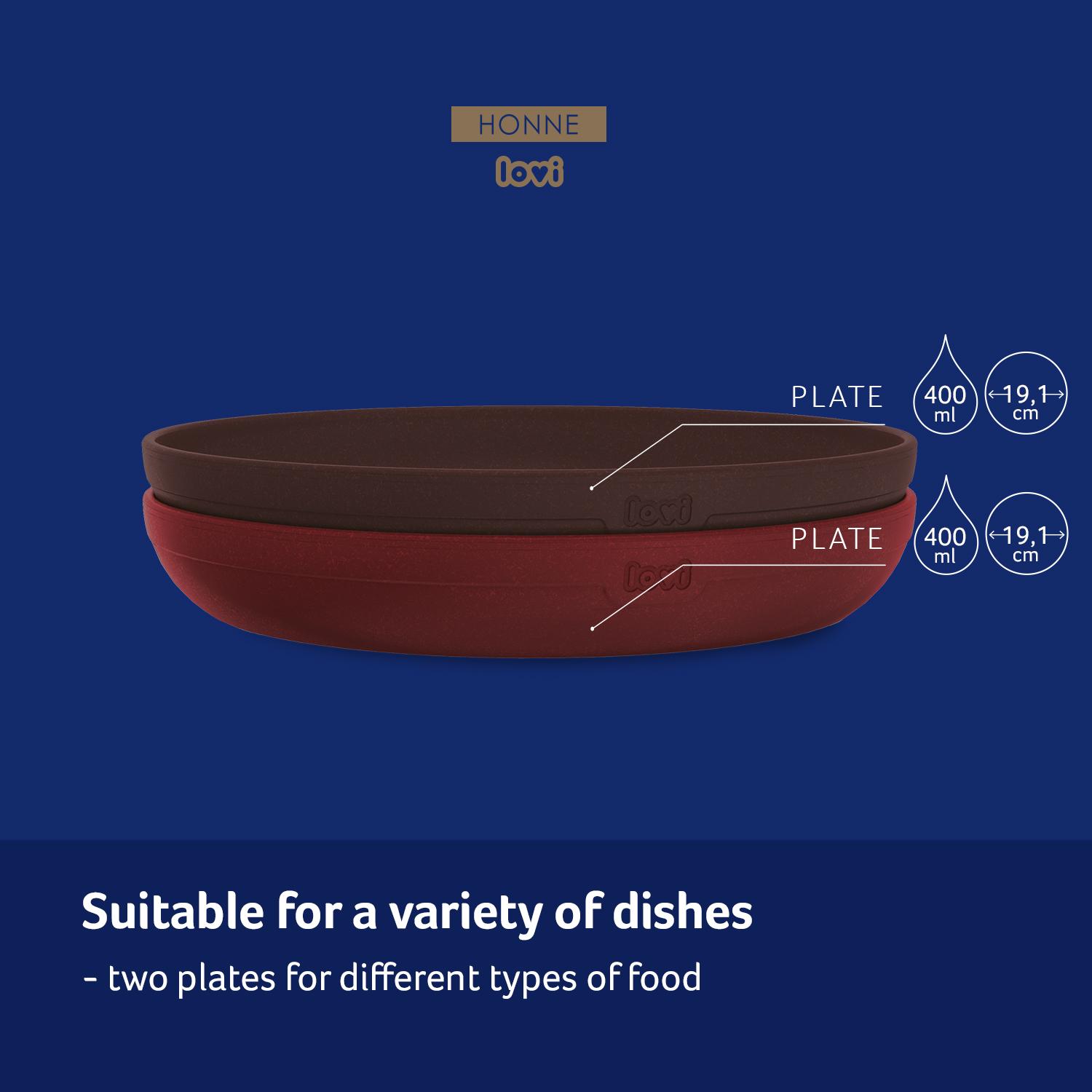 LOVI lautaset on suunniteltu ensimmäisten aterioiden harjoitteluun. Nämä sopivat erityisesti kasvuvaiheeseen, jossa lapsen ruokavaliota laajennetaan. Setti sisältää kaksi erisävyistä lautasta (400 ml), jotka sopivat erilaisiin ruokiin.